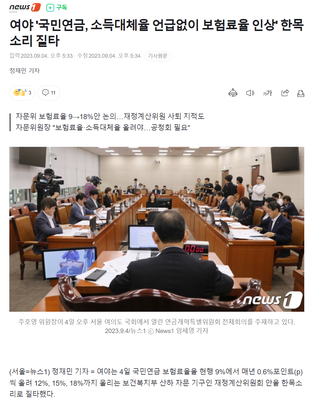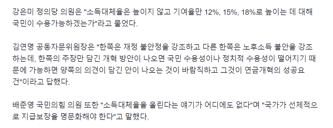 여야에서 합심해서 보험료율 인상만큼 소득대체율(연금지급액수) 인상하라고 드러누움