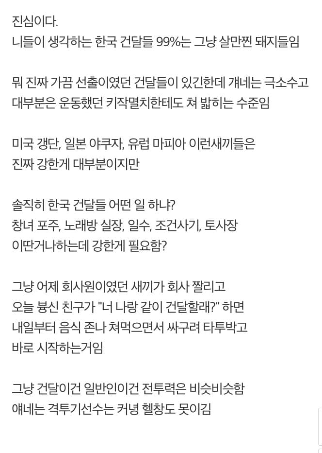 한국 건달이 약한 이유
