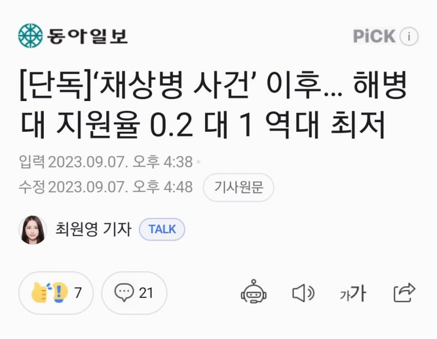최신 해병대 지원율