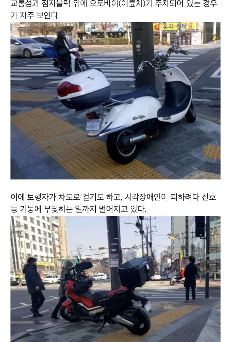 시각장애인들 가로막는 바이크