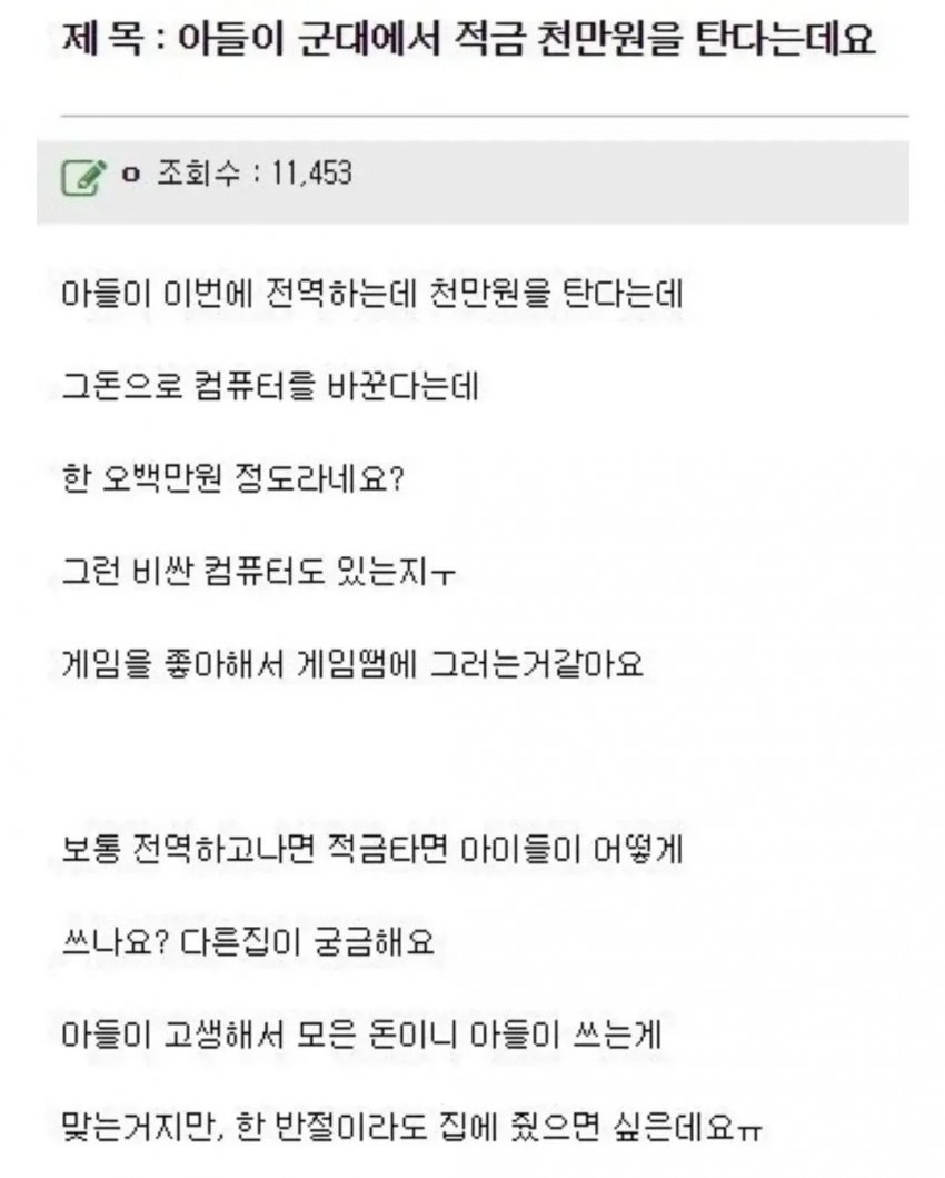 아들이 군대에서 천만원을 모았다네요