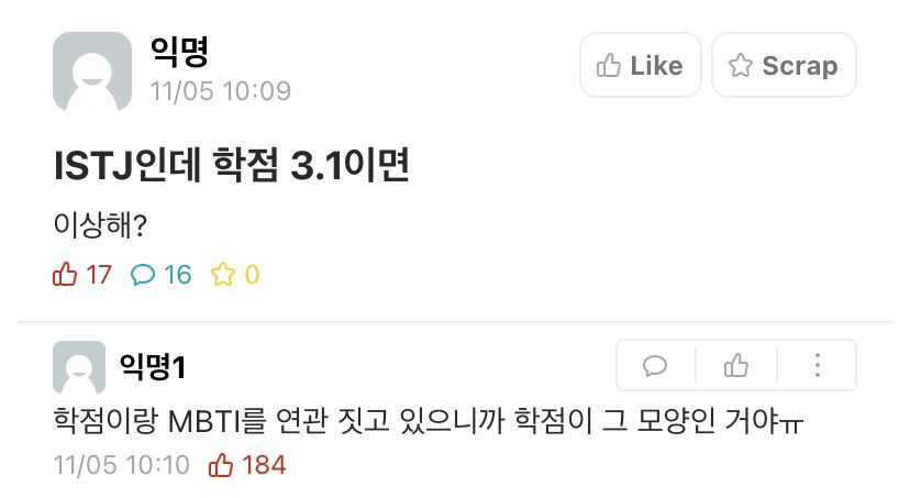 학점이 낮은 MBTI