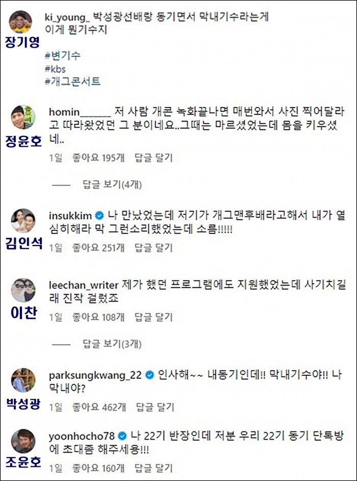 개그맨들한테 자기를 개그맨이라고 소개하고 유튜브에 출연해서 본인을 개그맨이라고 소개함
