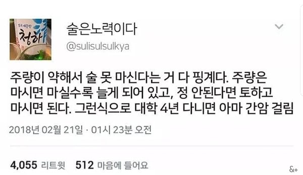 주량이 약해서 술 못 마신다는 거 다 핑계다