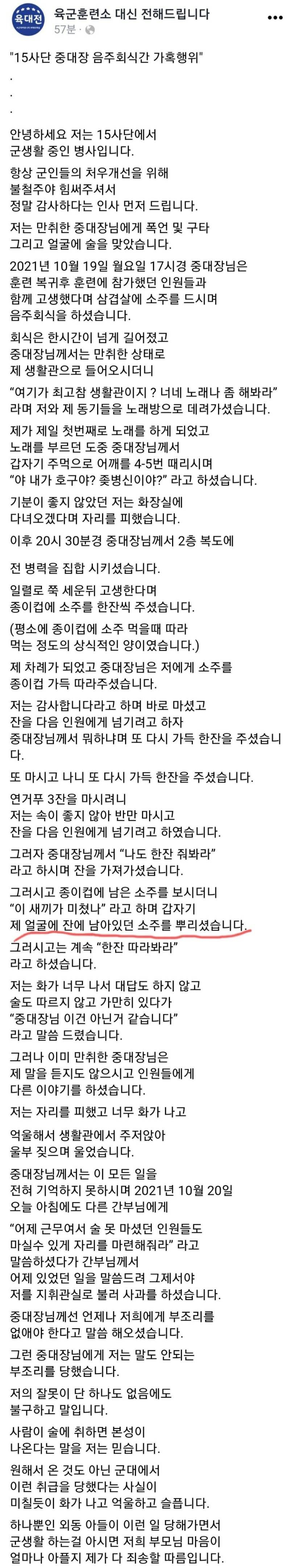 병사 얼굴에 소주 뿌리는 중대장