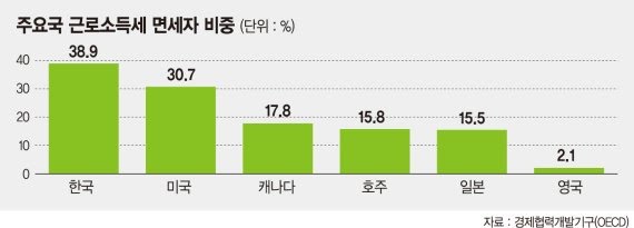 정답 : 우리나라 대부분의 서민들은 이미 근로소득세를 면세받아서 깎아줄 세금 자체가 없다