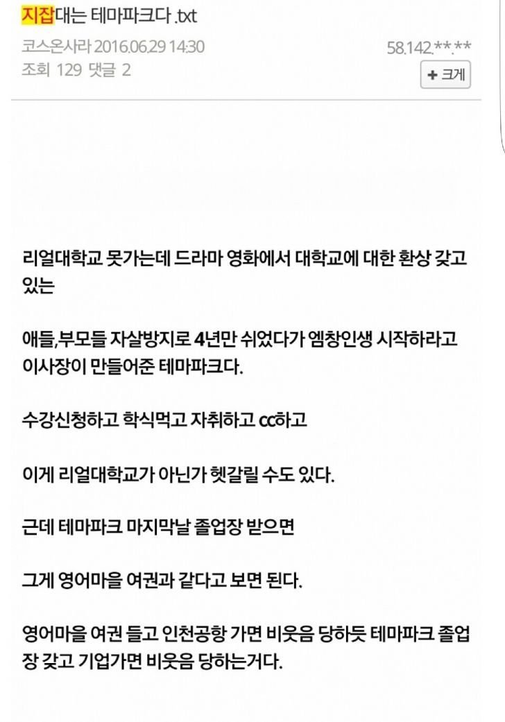 지잡대 현실