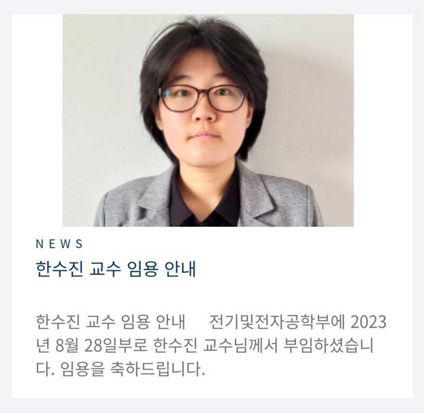 한수진 교수는 99년생 카이스트 교수로 만 16세에 검정고시를 통과한 뒤 2014년 미국 UC버클리(Berkeley) 대학에 진학하고