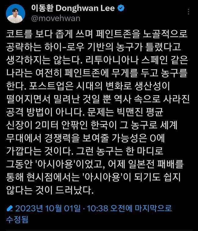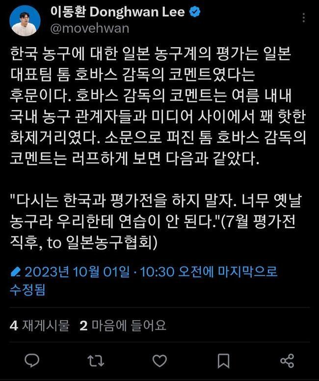 일본 대표팀 감독의 한국 농구 평가.txt
