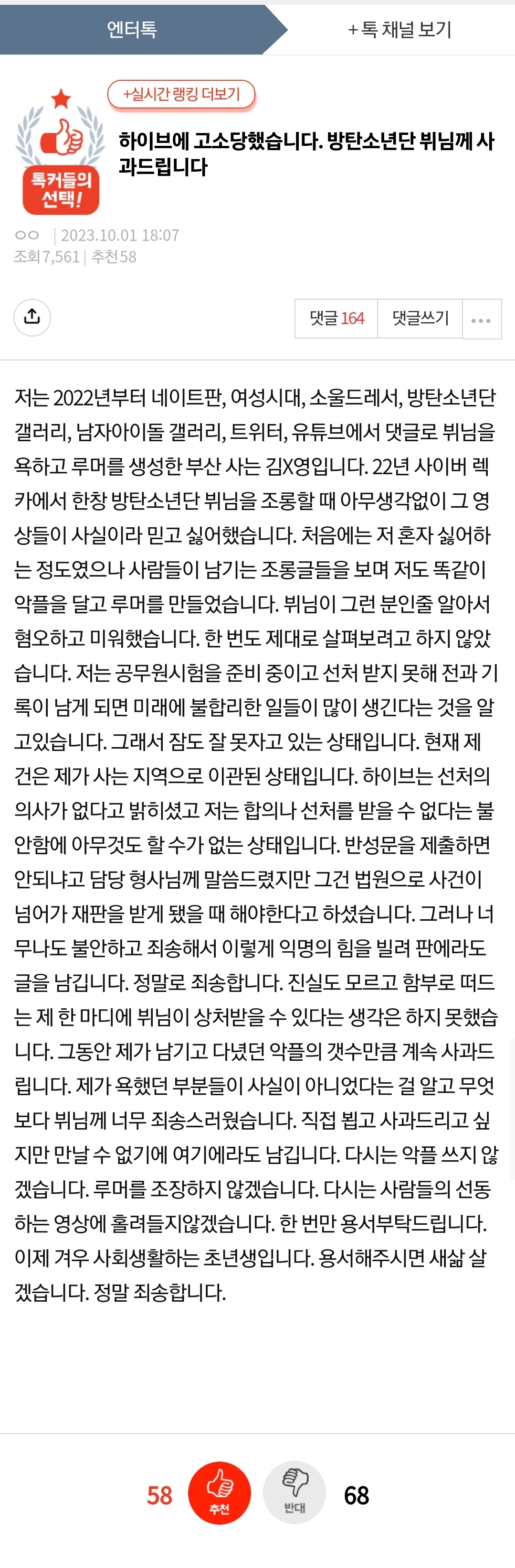 연예인 악플 달다가 고소 먹은 공무원 준비생