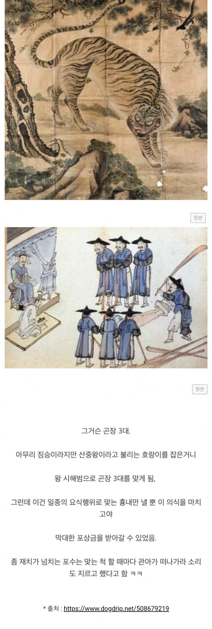 조선시대에 호랑이를 잡으면 받는 것