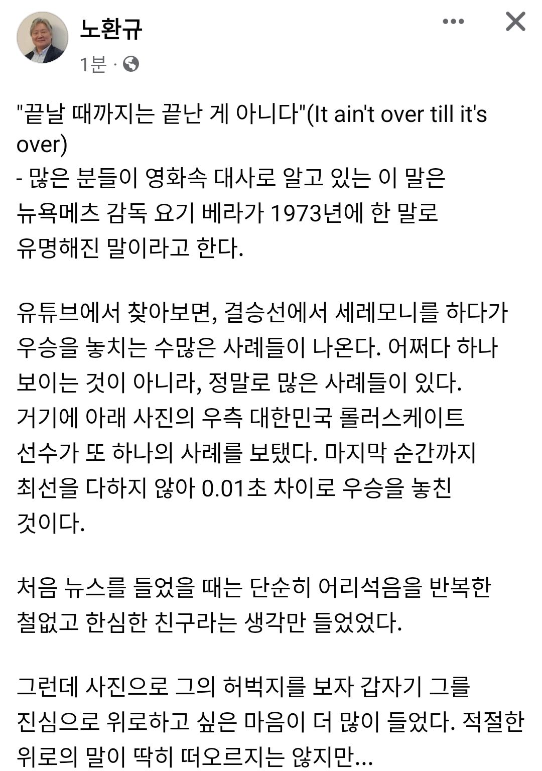 롤러 경기를 보고 난 유명의사의 페이스북