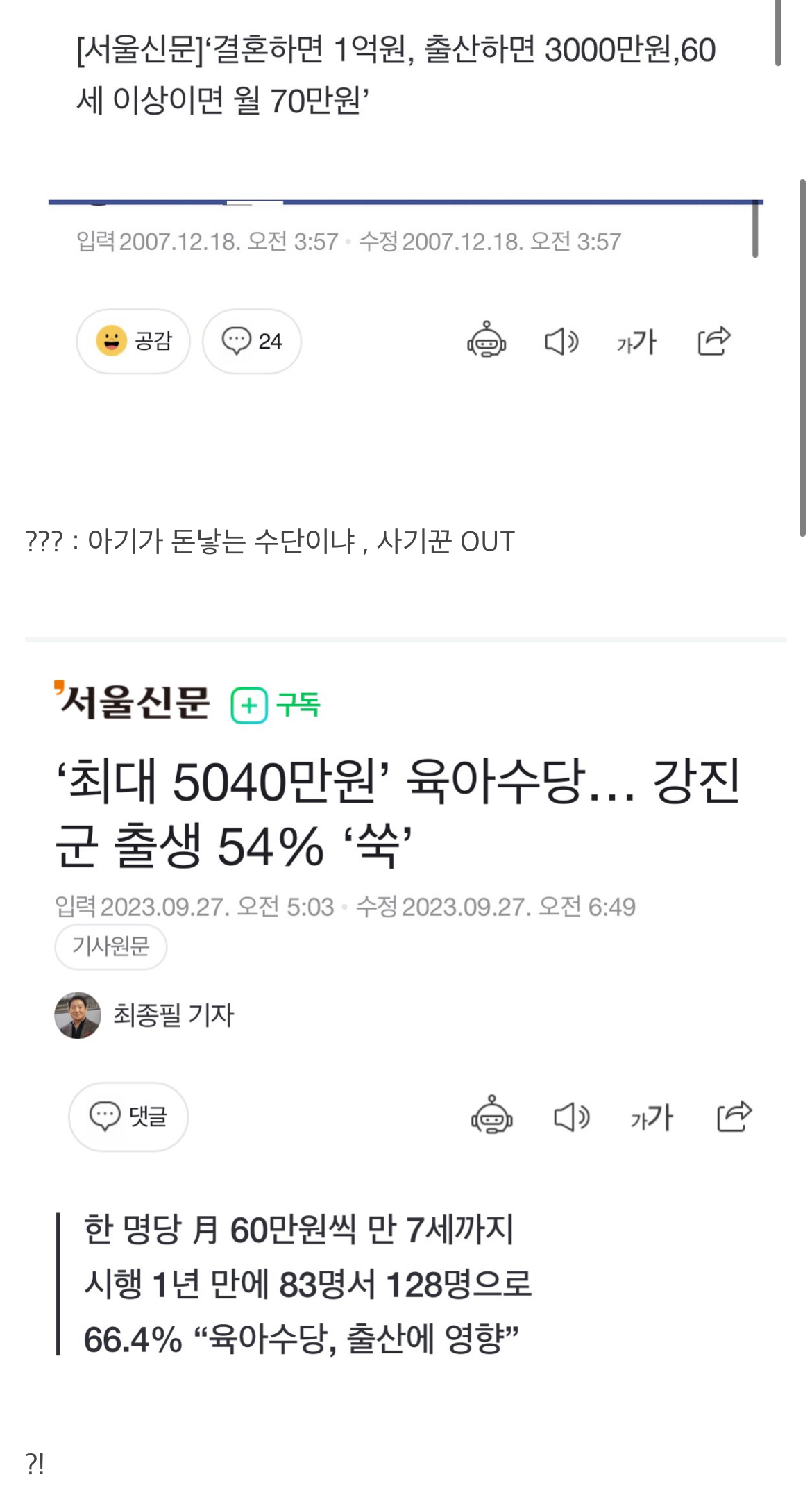 2007년 저출산 대책 레전드
