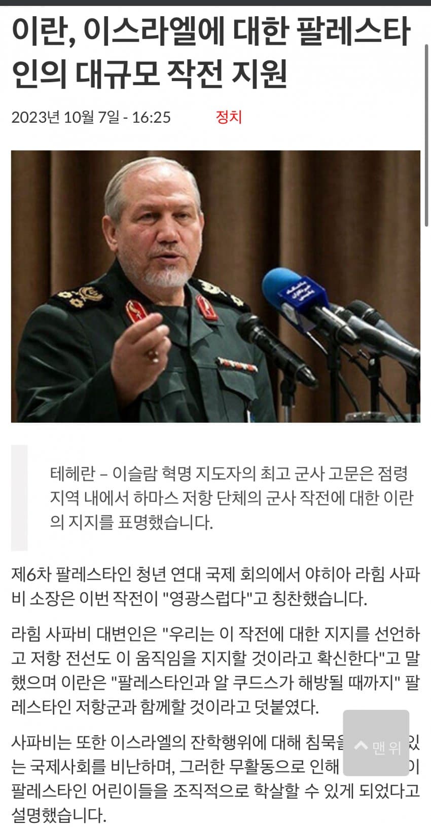 중동전쟁으로 확산될 가능성이 커짐