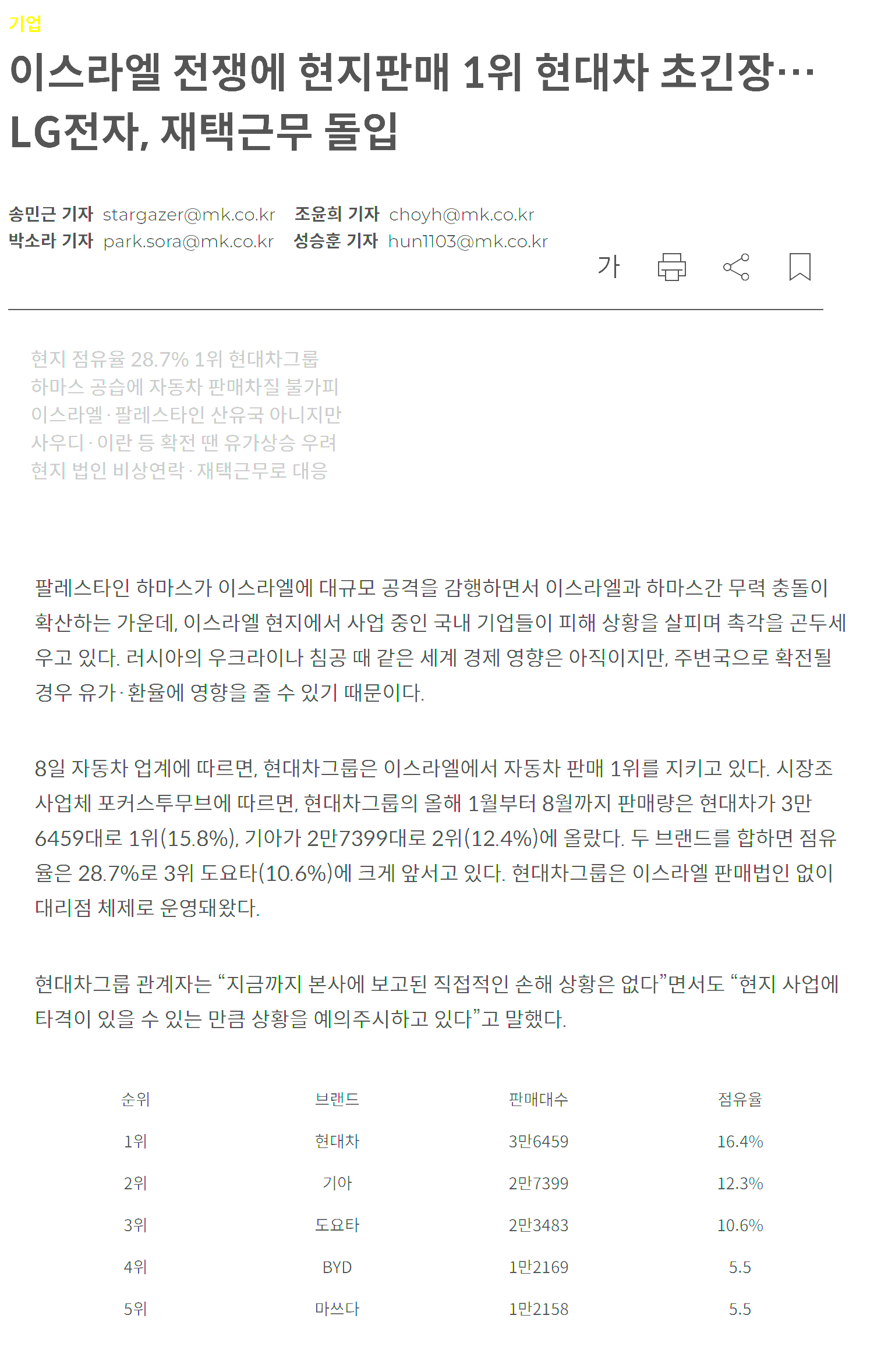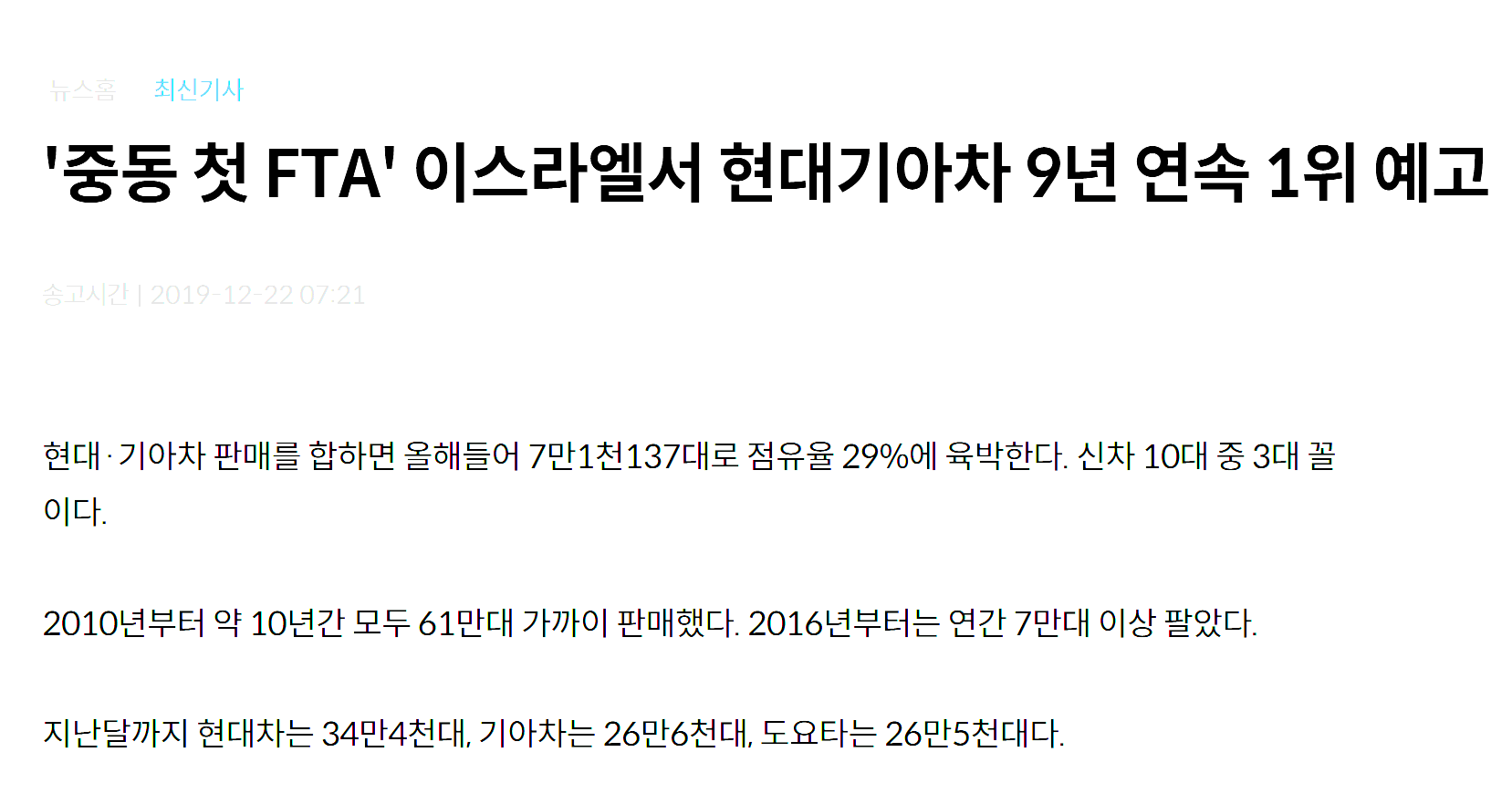그 도요타마저 이스라엘에서는 1위 못했음 ㄷㄷ