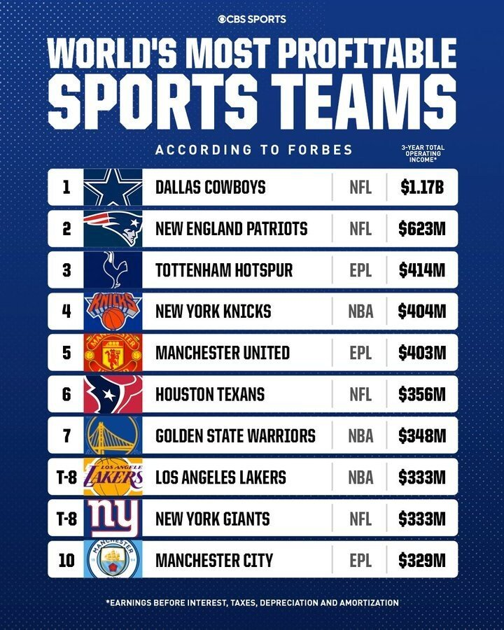 전 세계 스포츠 구단 중 돈 잘 버는 순위