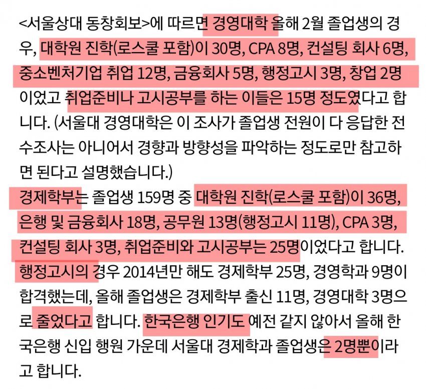 * 서울대 로스쿨 진학 단일학과 중 1위는 서울대 경제학부라고 함