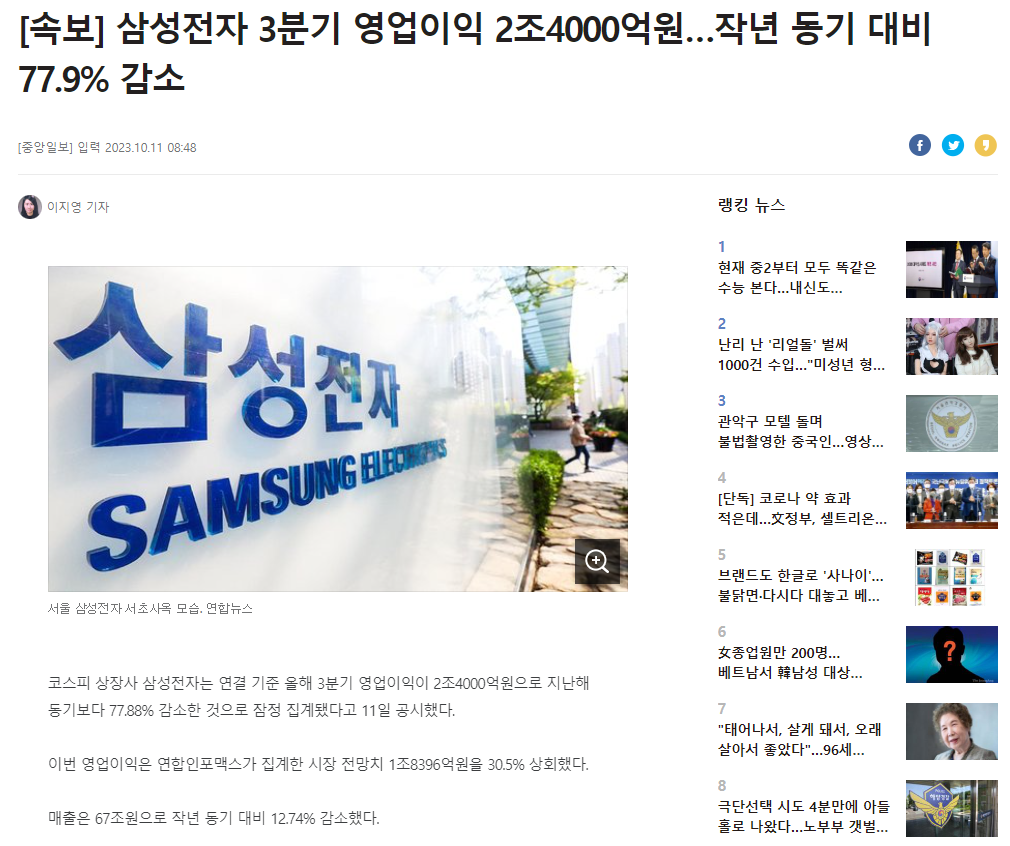 영업이익 작년 대비 80퍼 가까이 감소 ㅋㅋ