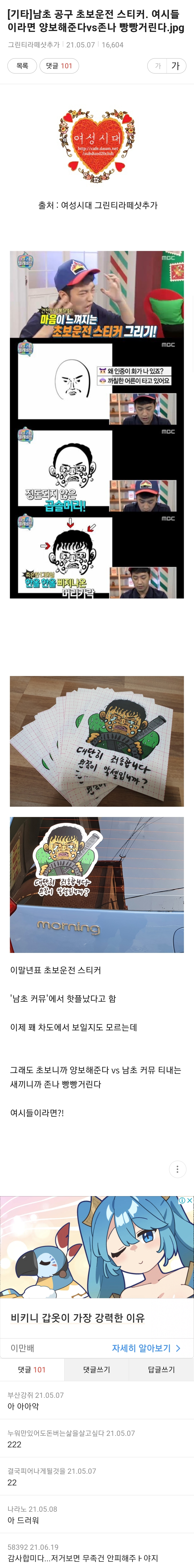 여시에서 논란 됐었던 초보운전 스티커