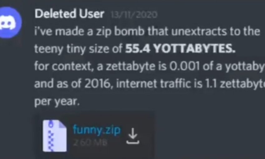디코의 한 유저가 무려 55.4요타바이트의 압축파일 폭탄을 만드는데 성공함ㅋㅋㅋㅋㅋㅋㅋㅋㅋ