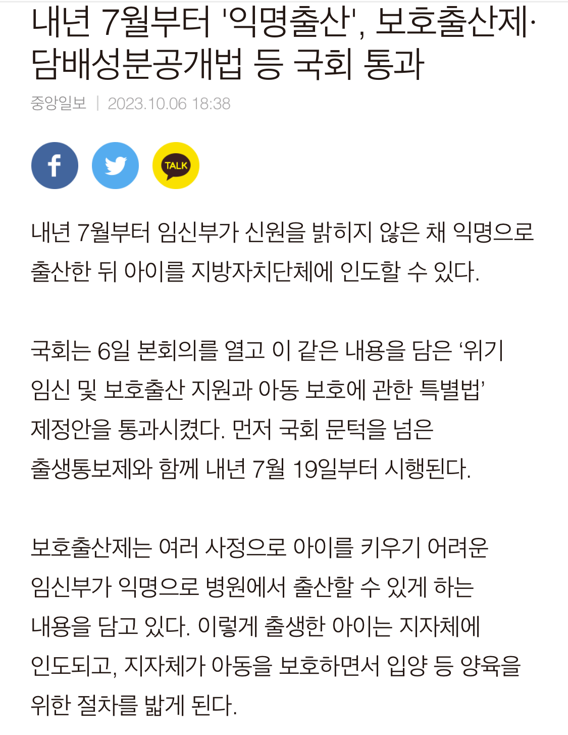 근데 내년부터 익명출산도 됨ㅋㅋㅋ