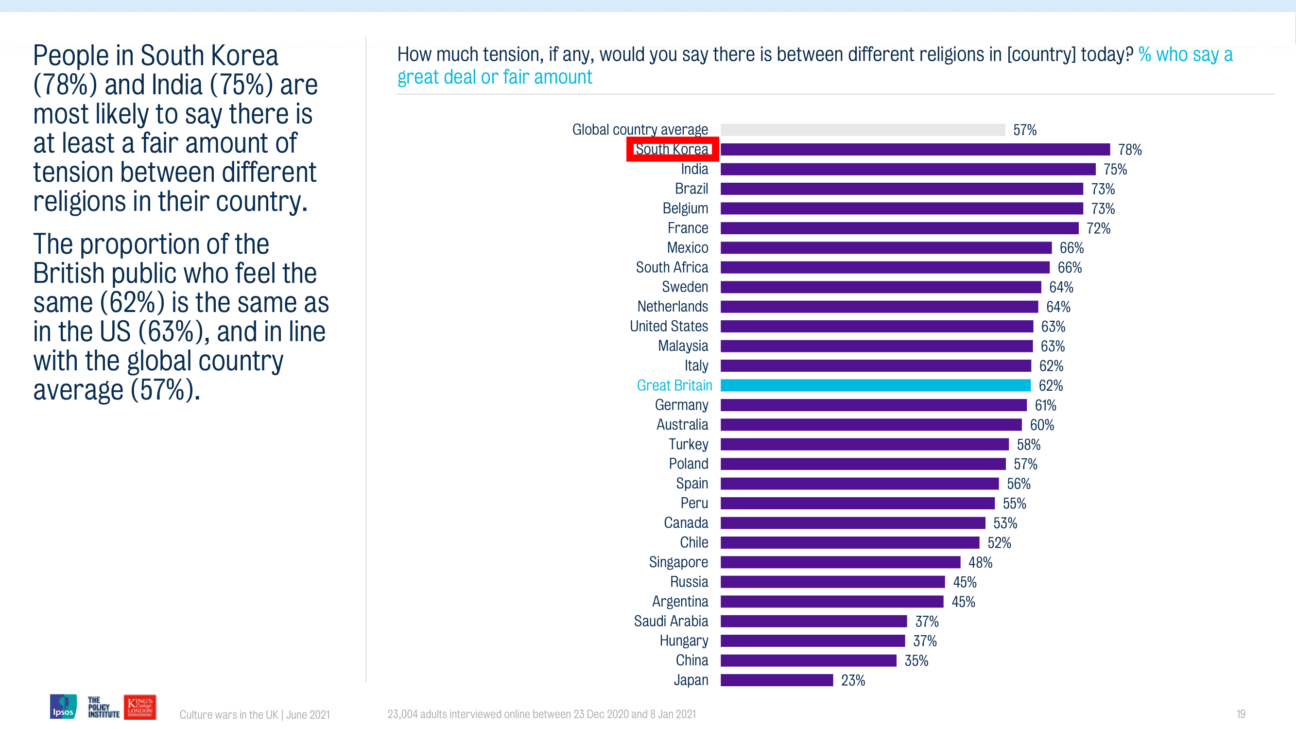 한국인들은 인도, 프랑스, 미국, 영국, 브라질, 독일, 터키보다도