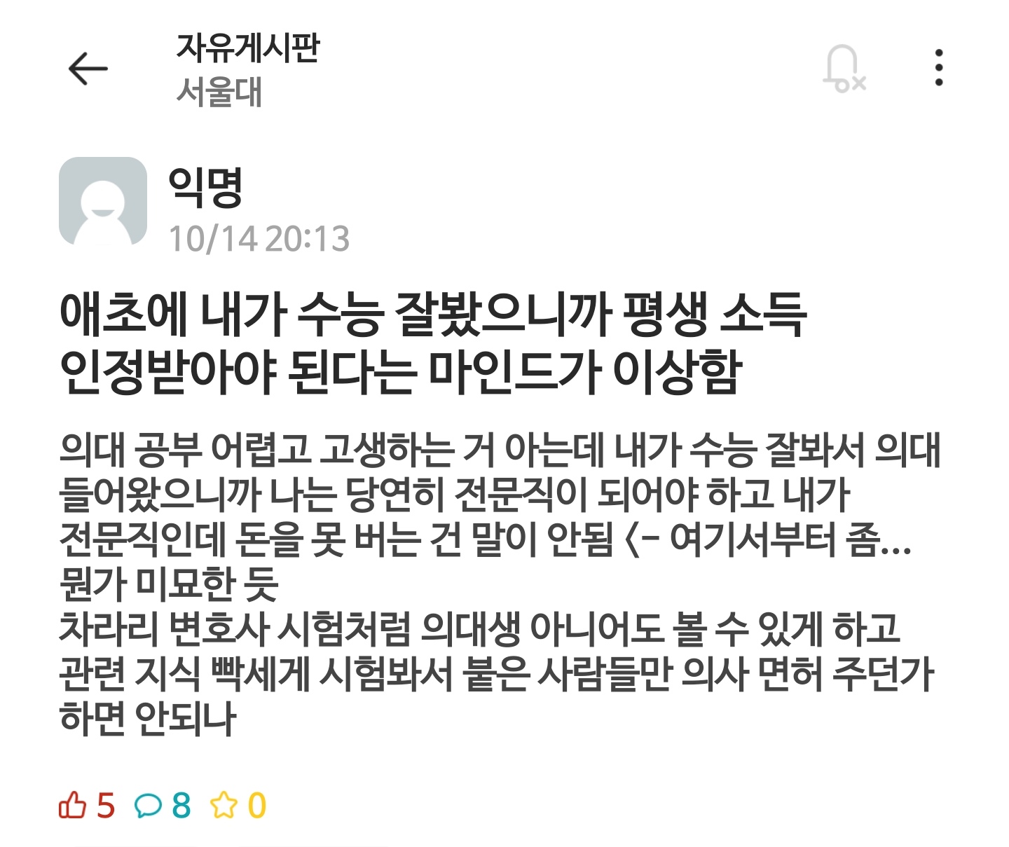 어제자 서울대 에타 일침
