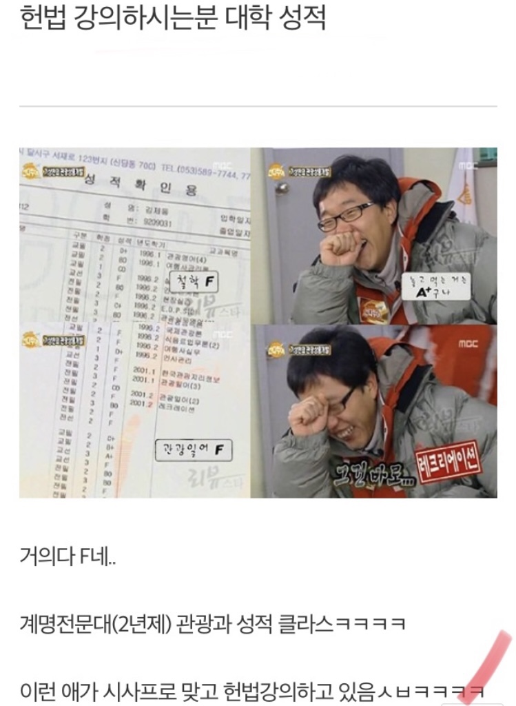 김제동 대학 성적
