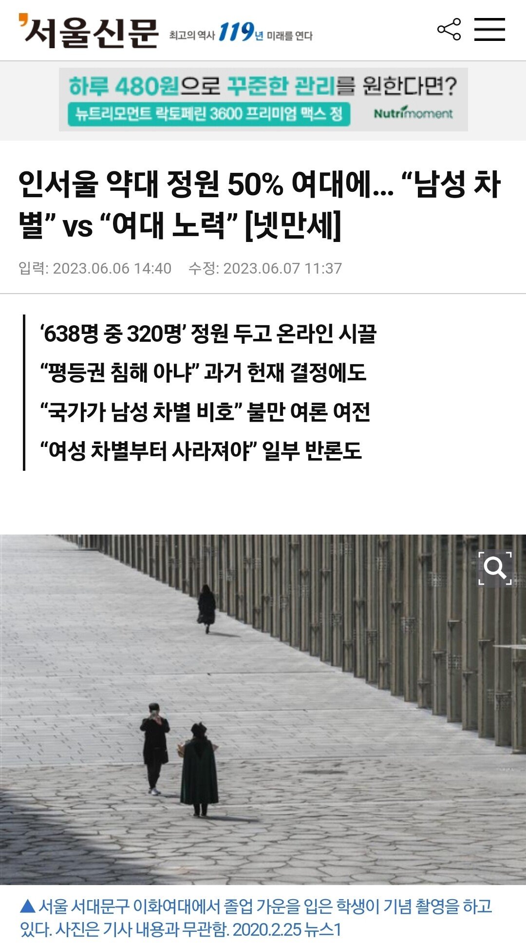현재 의대도 성별 형평성 문제가 불거지는데 정원 칼질하는 겸에 남녀차별하는 여대 의대 약대 로스쿨 이 부분도 손봐야됨