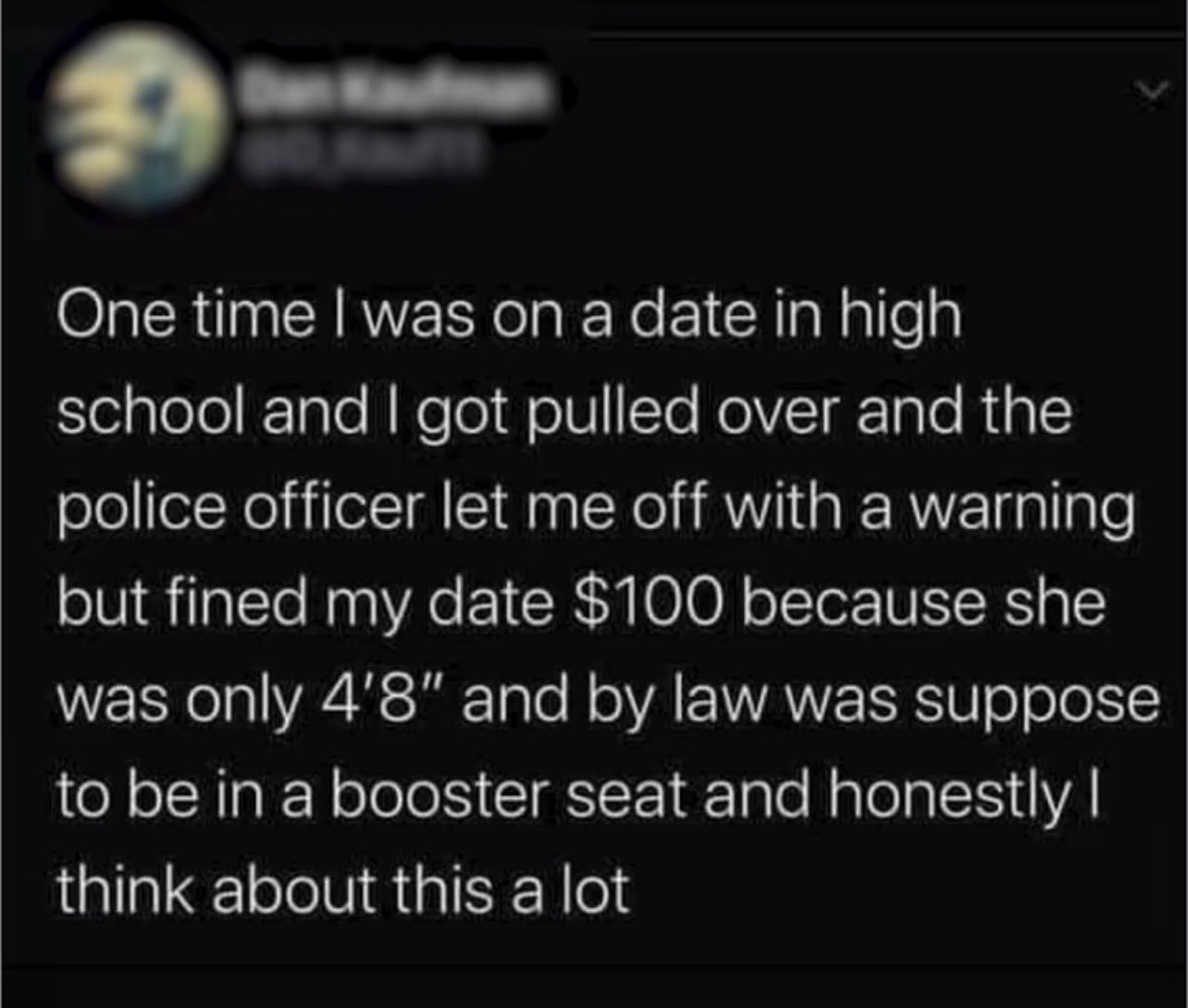한 번은 고등학교 때 차 타고 데이트 나갔는데 경찰이 내 차 세우는 거임