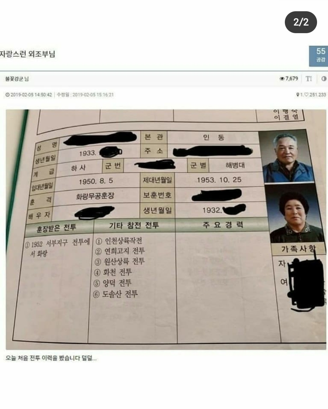 할아버지의 전투경력