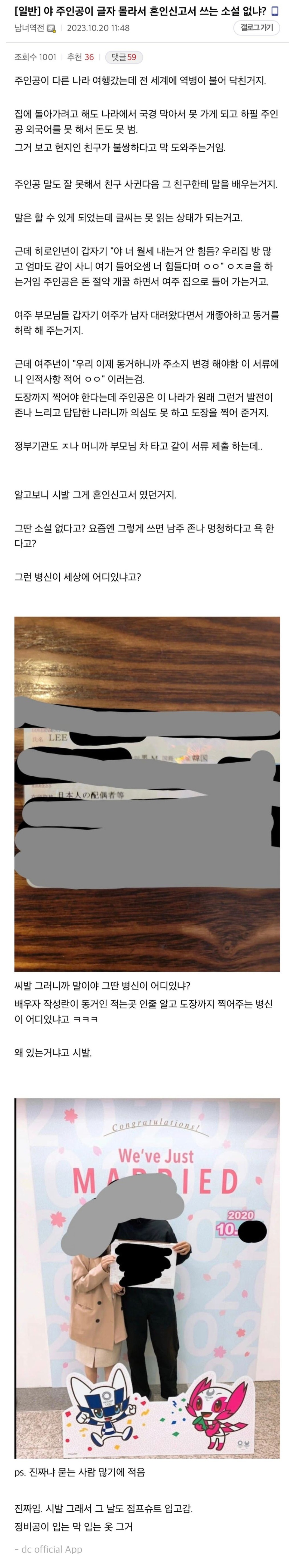 주인공이 글 몰라서 혼인신고서 쓰는 소설