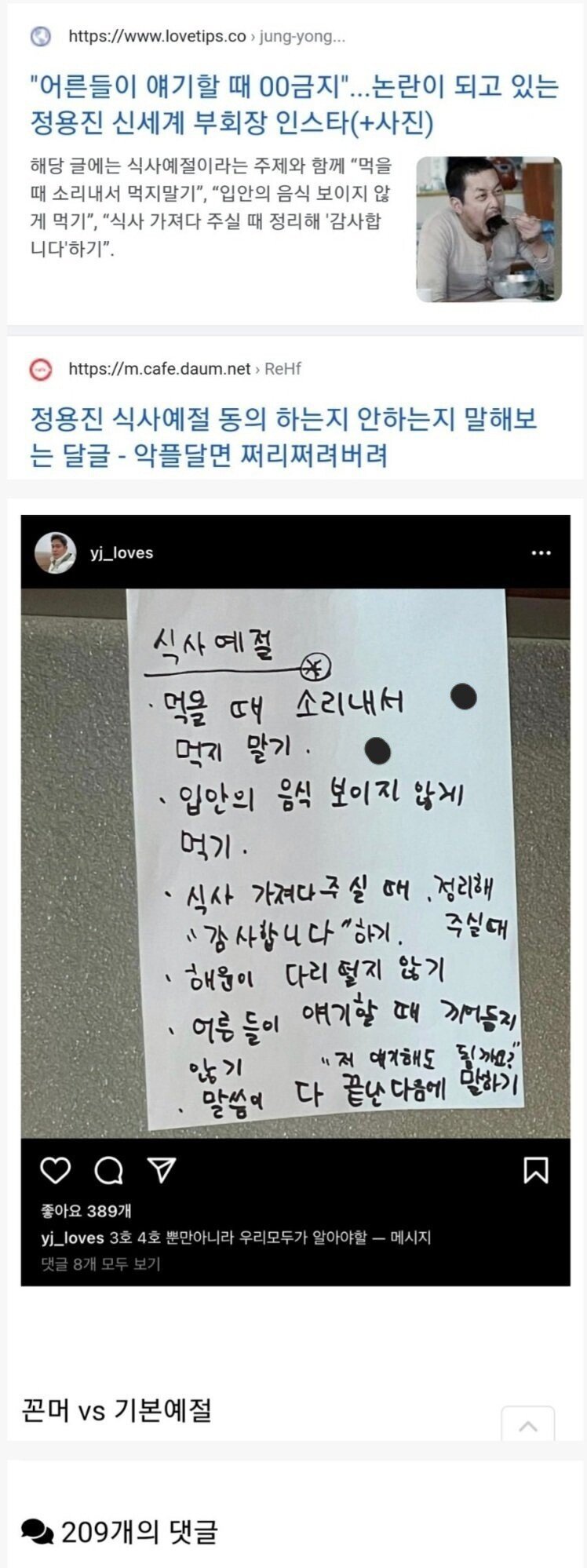 꼰대 논란 있었던 정용진 집안 식사 예절