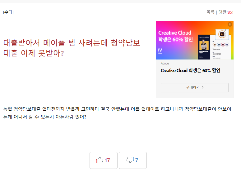 대출받아 게임 아이템 사려고 하는 메이플 유저