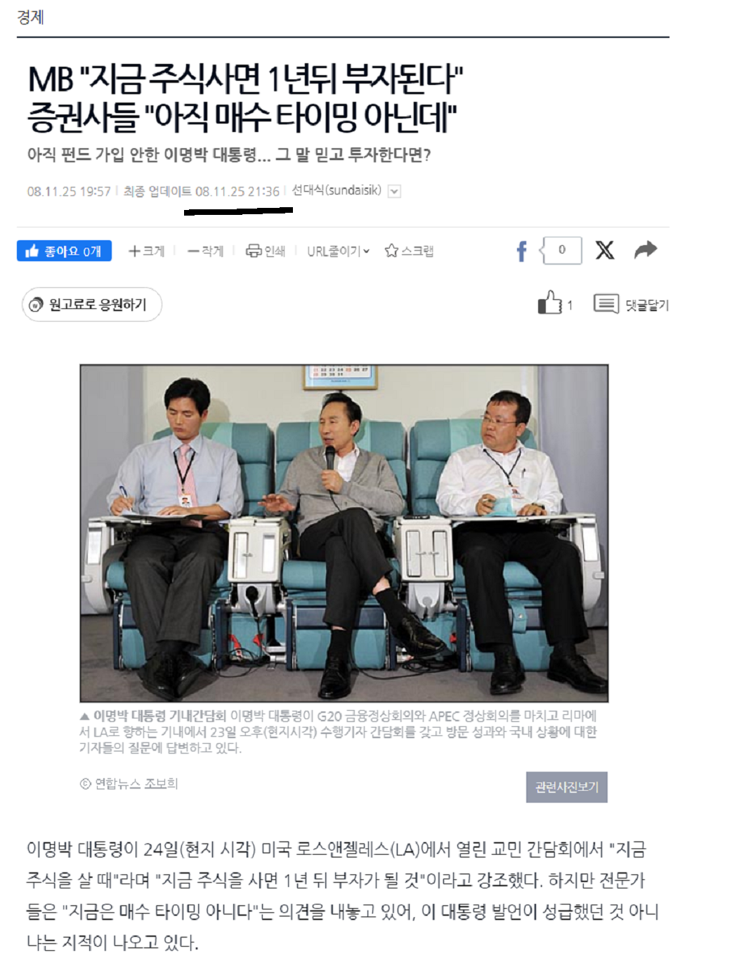 이때는 매도할때가아니라 매수할때라고 풀매수조지라던 이명박각하...