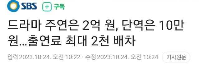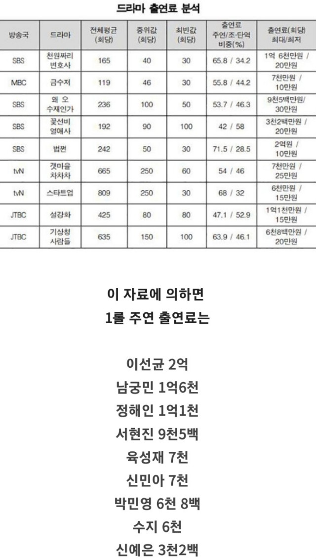 국정감사에서 밝혀진 배우들 드라마 출연료