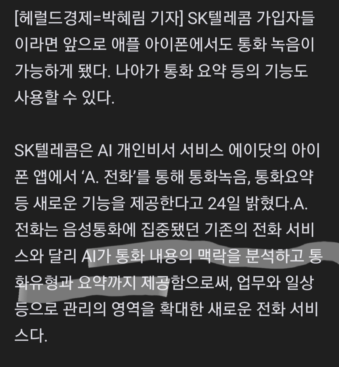 AI가 통화내용 요약, 통화녹음 해준다 함
