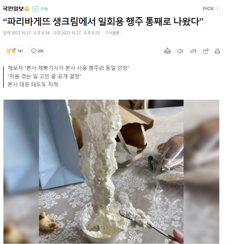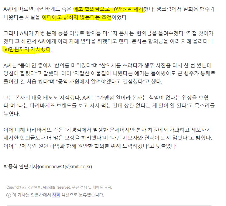 파리바게트 생크림 행주사건 합의금