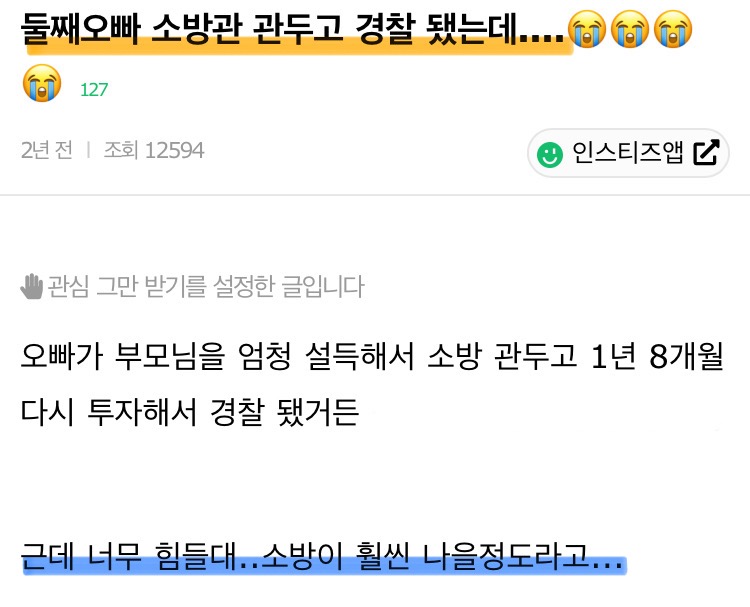 의외로 소방이 경찰보다 훨씬 널널한듯