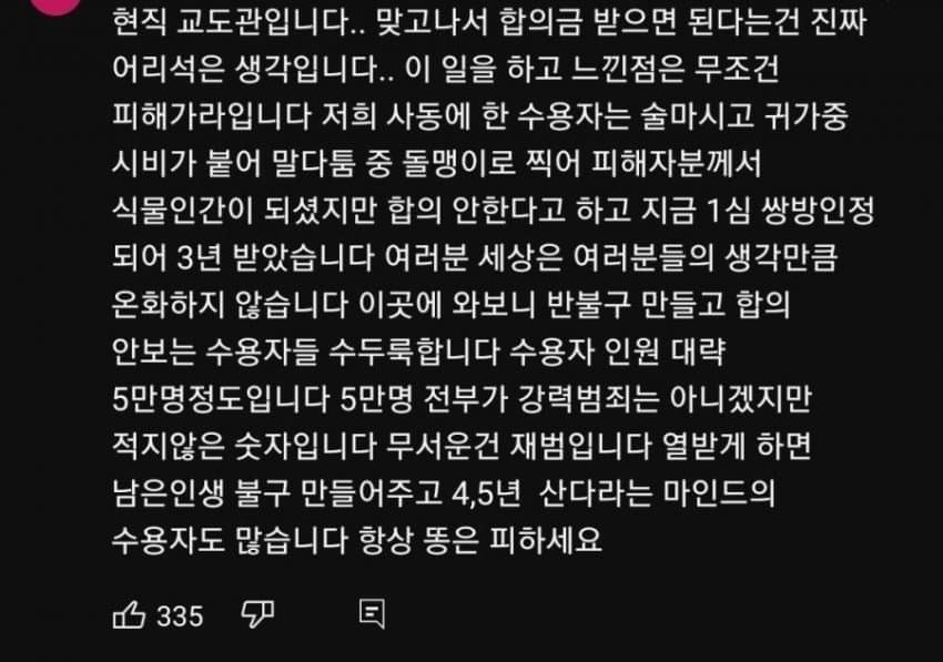 그러니 애초에 맞을 상황을 안만들어야하고 합의금 뜯을거다는 마인드로 도발하는것도 지양해야함