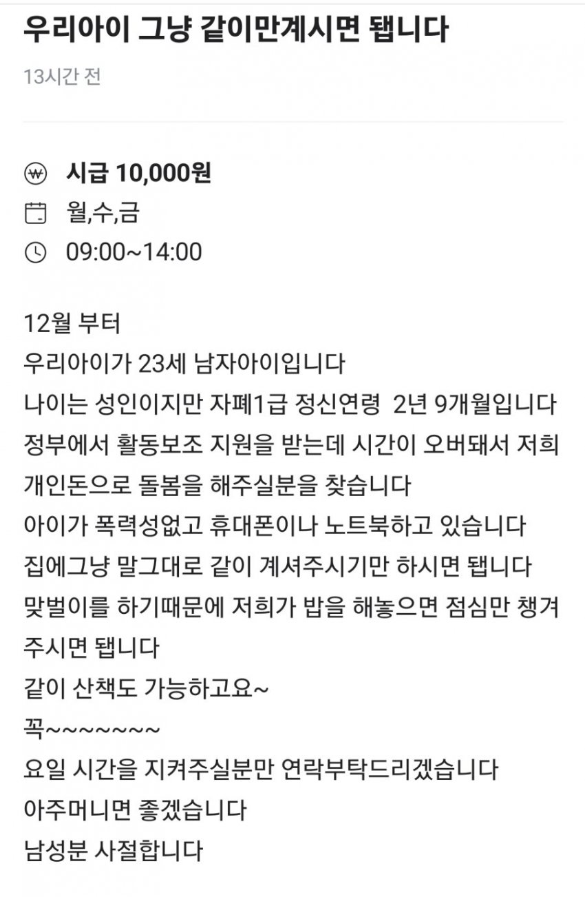 당근 자폐아 돌보기 알바