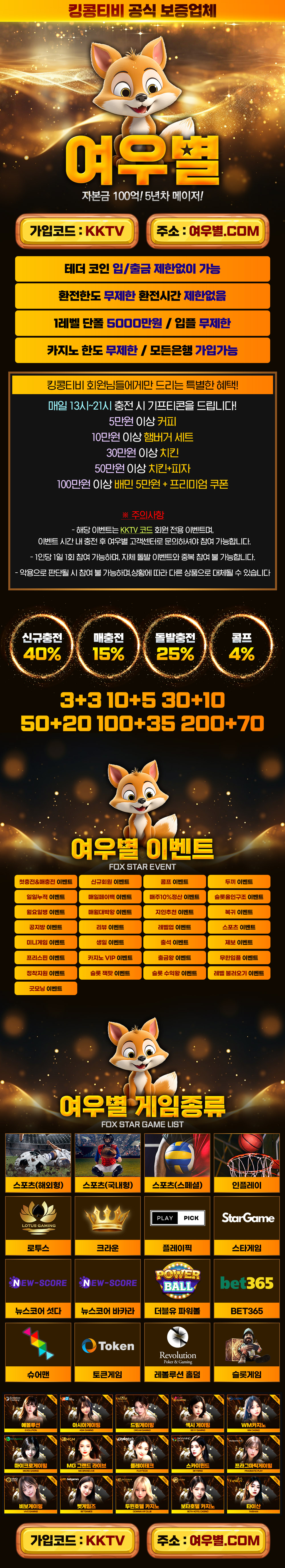 가족놀이터에서의 먹튀 피해시 킹콩티비에서 100% 보상 해드립니다.